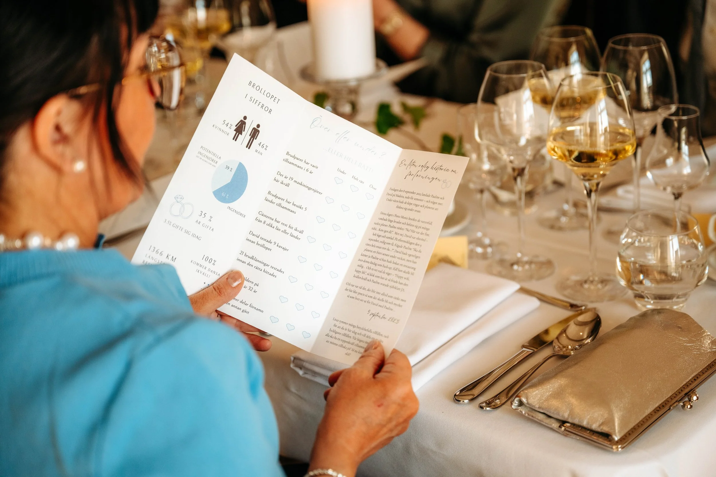 Alla bröllop är olika och det viktigaste är att lekarna känns rätt för just er. För vissa brudpar passar många roliga inslag under middagen, medan andra föredrar en lugnare kväll med mer fokus på tal, samtal och dans.